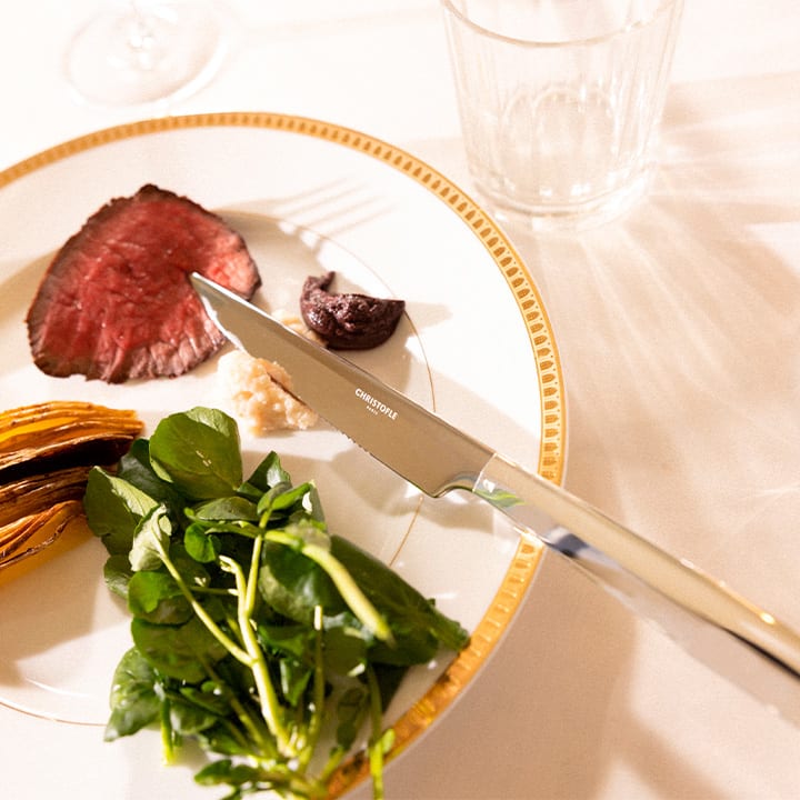 Christofle propose divers couteaux à steak et à viande, idéal pour découper votre pièce de viande avec simplicité lors de vos réception. La lame en acier de nos couteaux s'accocie parfaitement en fonction des collections au manche en acier ou en métal argenté. Vendus individuellement ou en coffret, découvrez nos produits pour compléter vos accessoires de cuisine ou encore vos ensembles de couverts, et dressez une table avec élégance et raffinement.