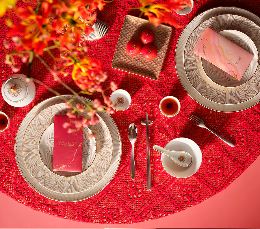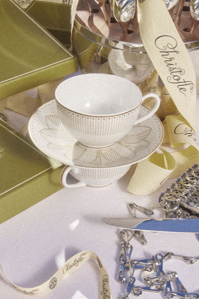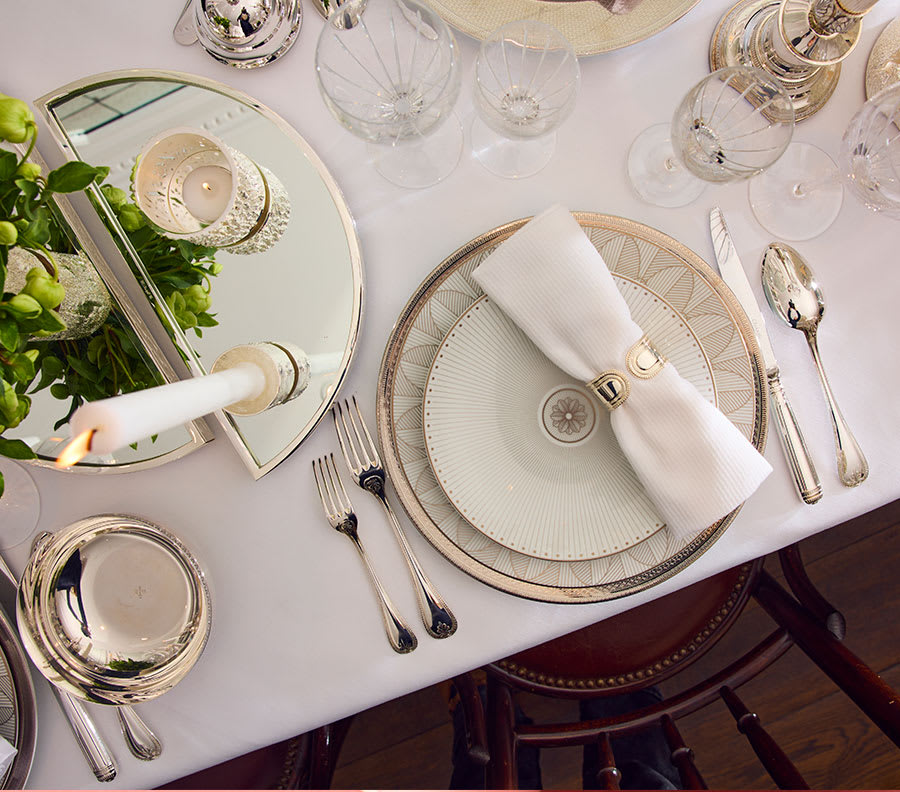Porcelain, silver flatware, decorative objects such as the iconic candelabra, its photo frames, its silver champagne buckets... The collection and its inimitable style are declined through all the categories of the Art of the table.