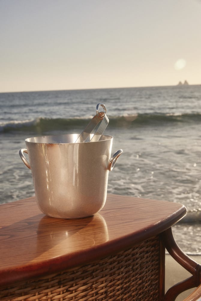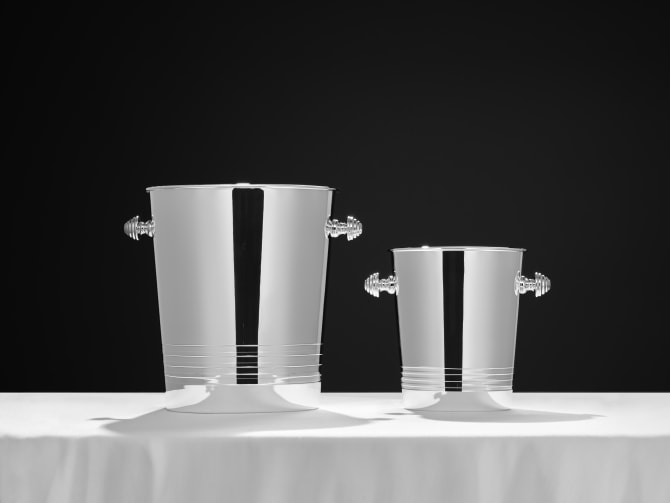 In 2024, Thom Browne is collaborating with the maison Christofle, to offer two new barware references: a champagne bucket and an ice bucket, both silver-plated. Widely recognized for challenging and modernizing today's uniform, Thom Browne questions traditional proportions. Its designs consistently convey a true american sensibility rotted in quality craftmanshi and precise tailoring. Discover the two elegant pieces that will bring sparkle to you receptions.