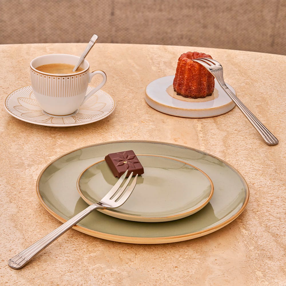 The dessert fork is used with the dessert spoon for entremets, but it also works for starters. With its delicate tines, the dessert fork will allow your guests to take each bite with precision, preserving the meticulous presentation of the most elaborate desserts.