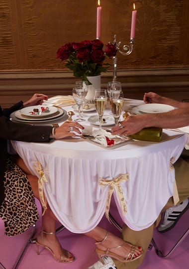 バレンタインデーの朝食には繊細なコーヒーカップ、夕食には美しい磁器の プレート、花で飾られたセンターピースで夜を明るく演出してください。
