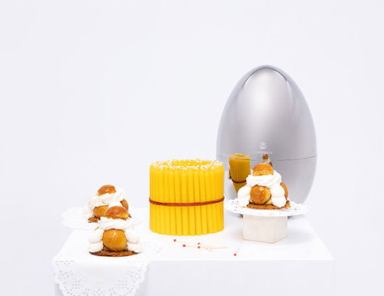 MOOD Party est accompagné d'un plateau en acier avec une planche de présentation en noyer. Il se prolonge par un réceptacle central pour recevoir le MOOD. Pour compléter cet ensemble élégant, des ramequins en porcelaine de Limoges forment autour du MOOD une rosace de récipients parfaits pour le snacking.