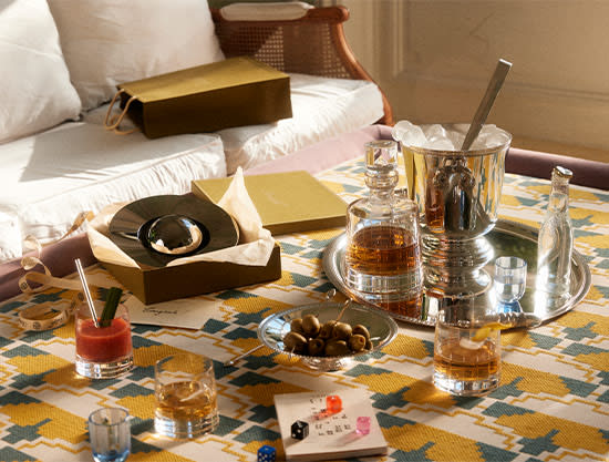 The wine bottles are placed in the Graphik bottle rest, whose modern design is inspired by the traditional pattern of the French master glassmakers. For those that want something a bit more bubbly, the Thom Browne Champangne bucket keeps the refreshments cold. The two collections combined create a moment that is both refined and modern.